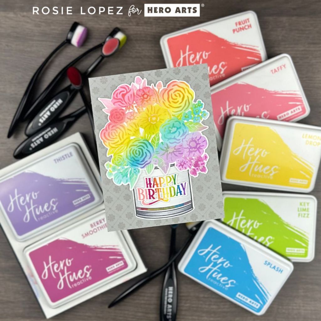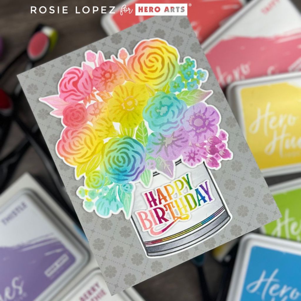 Welcome to the May Hero Studio Blog Hop! This month is all about flowers. Classic floral images that are a stash builder. Use these for Mother’s day, birthday, Get well, sympathy, Congrats or weddings. You could use these products for pretty much any holiday or event. So here comes spring with a classic Hero Arts floral kit!