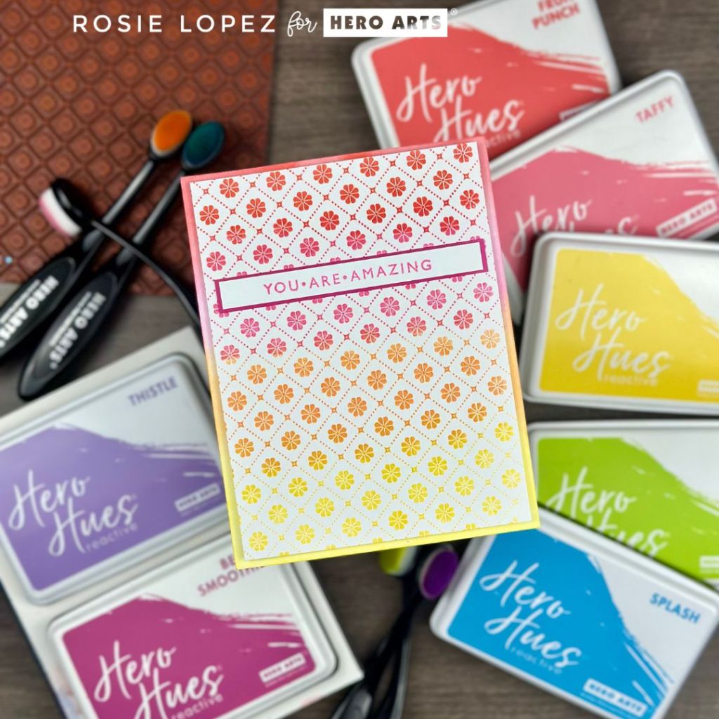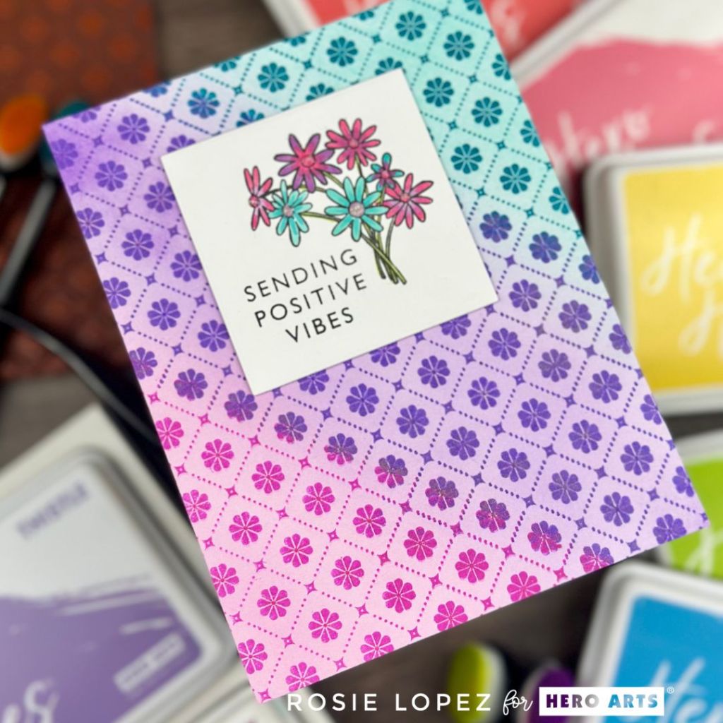 Cling stamps are always one of my favorite products for any release and this one does not disappoint. You can use it in so many ways. Today I used two similar ways. I did a traditional stamping with Hero Arts Reactive Inks and then for the second card I stepped it up just a bit by ink blending before stamping.